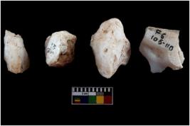 | Description / विवरण | Four worked utilised cores from which blades removed from almost all the sides. |
