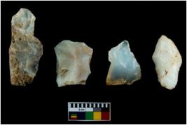 | Description / विवरण | Four worked utilised cores. Flakes removed from few sides. Most of them are uneven and few are tapering at one end. |