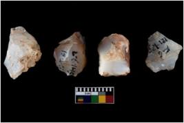 | Description / विवरण | Four worked utilised cores from which blades removed from almost all the sides. |