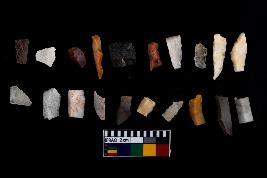 | Description / विवरण | There are n-20 of microliths, among them 6 are quartz, and 14 are of chert. Some of them are partially broken. They show variation in colour, size and shape. Some of them are blunted back blades, points, triangles, trapezes, crescent and truncated blades. |