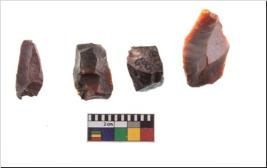 | Description / विवरण | Four utilised worked cores with sharp edges. Flakes removed from almost all the sides. Some are tapering at one end. |
