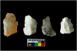 | Description / विवरण | Four worked utilised cores. Flakes removed from few sides. Most of them are uneven and few are tapering at one end. |