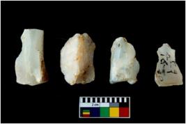 | Description / विवरण | Four worked utilised cores. Flakes removed from few sides. Most of them are uneven and few are tapering at one end. |
