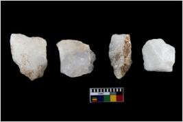 | Description / विवरण | A specimen of a fluted core having several broad fluted marks indicating the detached blades from it |