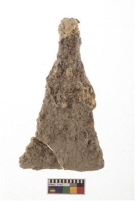 | Description / विवरण | A partially broken specimen of adze. It is convex shaped with working edge. |