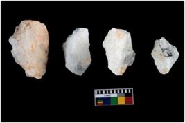 | Description / विवरण | A specimen of a fluted core having several broad fluted marks indicating the detached blades from it |