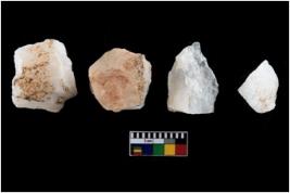| Description / विवरण | A specimen of a fluted core having several broad fluted marks indicating the detached blades from it |
