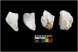 | Description / विवरण | A specimen of a fluted core having several broad fluted marks indicating the detached blades from it |