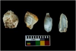 | Description / विवरण | Four worked utilised cores. Flakes removed from few sides. Most of them are uneven and few are tapering at one end. |