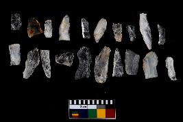 | Description / विवरण | There are n-20 of microliths, all of them are quartz. Some of them are partially broken. They show variation in colour, size and shape. Some of them are blunted back blades, points, triangles, trapezes, crescent and truncated blades. |
