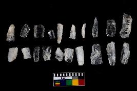 | Description / विवरण | There are n-20 of microliths, all of them are quartz. Some of them are partially broken. They show variation in colour, size and shape. Some of them are blunted back blades, points, triangles, trapezes, crescent and truncated blades. |