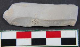 | Description / विवरण | Microlithic chert blade with positive bulb of percussion on the vertral side,retouching are present and two dorsal ridge is present. |