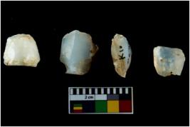 | Description / विवरण | Four worked utilised cores. Flakes removed from few sides. Most of them are uneven and few are tapering at one end. |