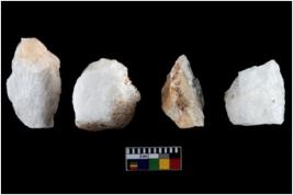 | Description / विवरण | A specimen of a fluted core having several broad fluted marks indicating the detached blades from it |