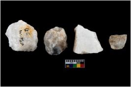 | Description / विवरण | A specimen of a fluted core having very few fluted marks before removing of blades form it. It is roughly rounded in shape and white in colour |