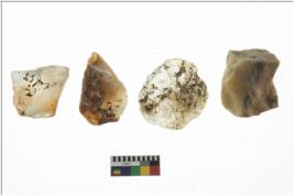 | Description / विवरण | Four worked utilised cores. Flakes removed from few sides. Most of them are uneven and few are tapering at one end. |