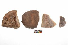| Description / विवरण | There are n-4 of utilized flake cores. There are multidirectional irregular dominant scar pattern on both dorsal and ventral face of the cores. Some of them bulge of percussion and some are flat flake cores. |