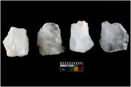 | Description / विवरण | Specimen of a fluted cores having several broad fluted marks indicating the detached blades from it. |