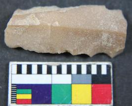 | Description / विवरण | Microlithic chert blade with notches on one side edge and one dorsal ridge is present. |