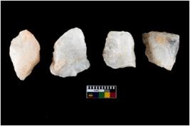 | Description / विवरण | A specimen of a fluted core having very few fluted marks before removing of blades form it. It is roughly rounded in shape and white in colour. |