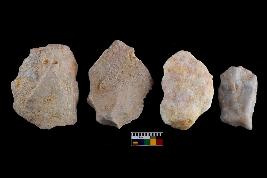| Description / विवरण | There are n-4 of utilized flake cores. There are multidirectional irregular dominant scar pattern on both dorsal and ventral face of the cores. Some of them bulge of percussion and some are flat flake cores. |