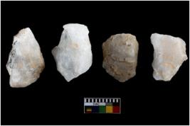 | Description / विवरण | Specimen of a fluted cores having several broad fluted marks indicating the detached blades from it. |