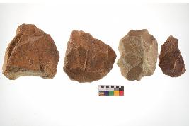 | Description / विवरण | There are n-4 of utilized flake cores. There are multidirectional irregular dominant scar pattern on both dorsal and ventral face of the cores. Some of them bulge of percussion and some are flat flake cores. |