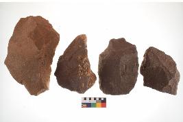 | Description / विवरण | There are n-4 of utilized flake cores. There are multidirectional irregular dominant scar pattern on both dorsal and ventral face of the cores. Some of them bulge of percussion and some are flat flake cores. |