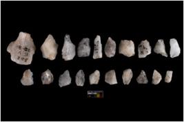 | Description / विवरण | There are n-20 of intact flake cores made up of Quartz. Some of them have bulge of percussion and some are flat flakes. |