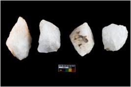 | Description / विवरण | A specimen of a fluted core having very few fluted marks before removing of blades form it. It is roughly rounded in shape and white in colour. |