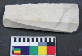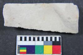 | Description / विवरण | Parallel sided chert blade with positive bulb of percussion on the ventral side,retouching are present and two dorsal ridge is present. |
