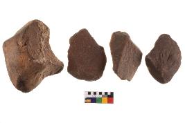 | Description / विवरण | There are n-4 of utilized flake cores. There are multidirectional irregular dominant scar pattern on both dorsal and ventral face of the cores. Some of them bulge of percussion and some are flat flake cores. |