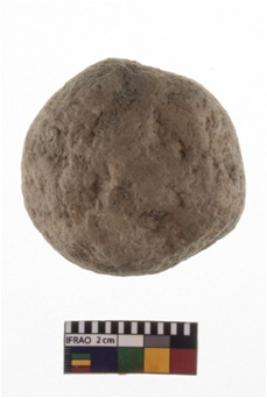 | Description / विवरण | A complete specimen of a sling ball made of Quartz,It is roughly circular in shape, It has weathered surface |