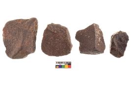 | Description / विवरण | There are n-4 of utilized flake cores. There are multidirectional irregular dominant scar pattern on both dorsal and ventral face of the cores. Some of them bulge of percussion and some are flat flake cores. |