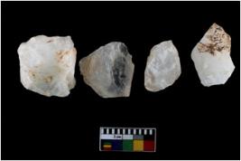 | Description / विवरण | Specimen of a fluted cores having several broad fluted marks indicating the detached blades from it. |
