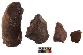 | Description / विवरण | There are n-4 of utilized flake cores. There are multidirectional irregular dominant scar pattern on both dorsal and ventral face of the cores. Some of them bulge of percussion and some are flat flake cores. |