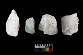 | Description / विवरण | Specimen of a fluted cores having several broad fluted marks indicating the detached blades from it. |