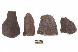 | Description / विवरण | There are n-4 of utilized flake cores. There are multidirectional irregular dominant scar pattern on both dorsal and ventral face of the cores. Some of them bulge of percussion and some are flat flake cores. |