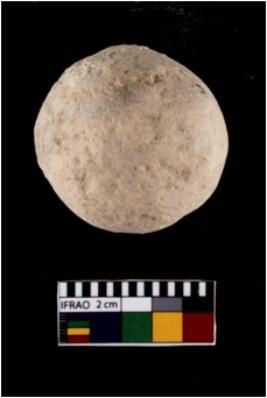 | Description / विवरण | A complete specimen of a slingball made of quartz , It is round almost perfectly globular in shape , It has rough surface with calcrit covering.some area |