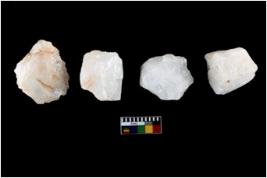 | Description / विवरण | A specimen of a fluted core having several broad fluted marks indicating the detached blades from it |