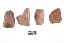 | Description / विवरण | Specimen of flake tools with prominent flaking marks. It made up of a short flakes with sides trimmed. |