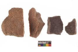 | Description / विवरण | There are n-4 of utilized flake cores. There are multidirectional irregular dominant scar pattern on both dorsal and ventral face of the cores. Some of them bulge of percussion and some are flat flake cores. |