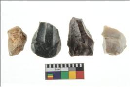 | Description / विवरण | Four worked utilised cores. Most of them are with sharp edges. Most of them are tapering at one end. |