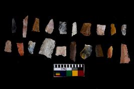 | Description / विवरण | There are n-20 of microliths, among them 6 are quartz, and 14 are of chert. Some of them are partially broken. They show variation in colour, size and shape. Some of them are blunted back blades, points, triangles, trapezes, crescent and truncated blades. |