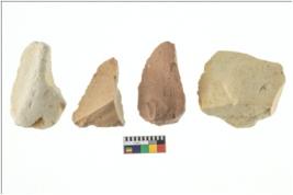 | Description / विवरण | Four worked utilised flakes. Most of them are uneven with sharp edges. |