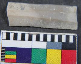 | Description / विवरण | Parallel sided chert blade with having two dorsal ridges. |