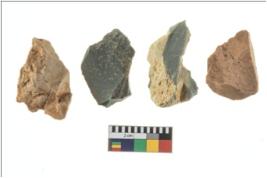 | Description / विवरण | Four worked utilised flakes. Most of them are uneven with sharp edges. |