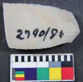 | Description / विवरण | Piece of blade with two dorsal ridges having bulb of purcussion on ventral side. |