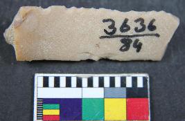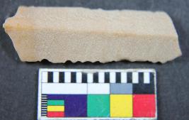| Description / विवरण | Piece of parallel sided chert blade with having two dorsal ridges. |