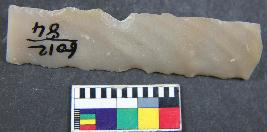 | Description / विवरण | Parallel sided chert blade with having two dorsal ridges. |